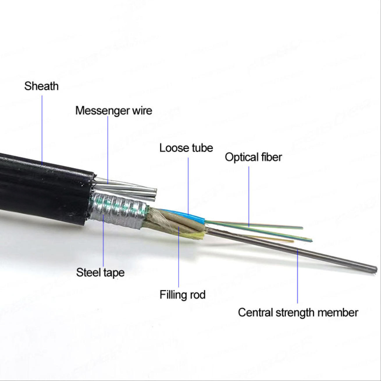 GYTC8S光ファイバーケーブルは,典型的な自立式屋外光ファイバーケーブルである.メンタル・ストラスト・メンバーは,支える部分はPEシートで完成し,フィギュア8構造になります.弾圧耐性を保証する PE外蓋